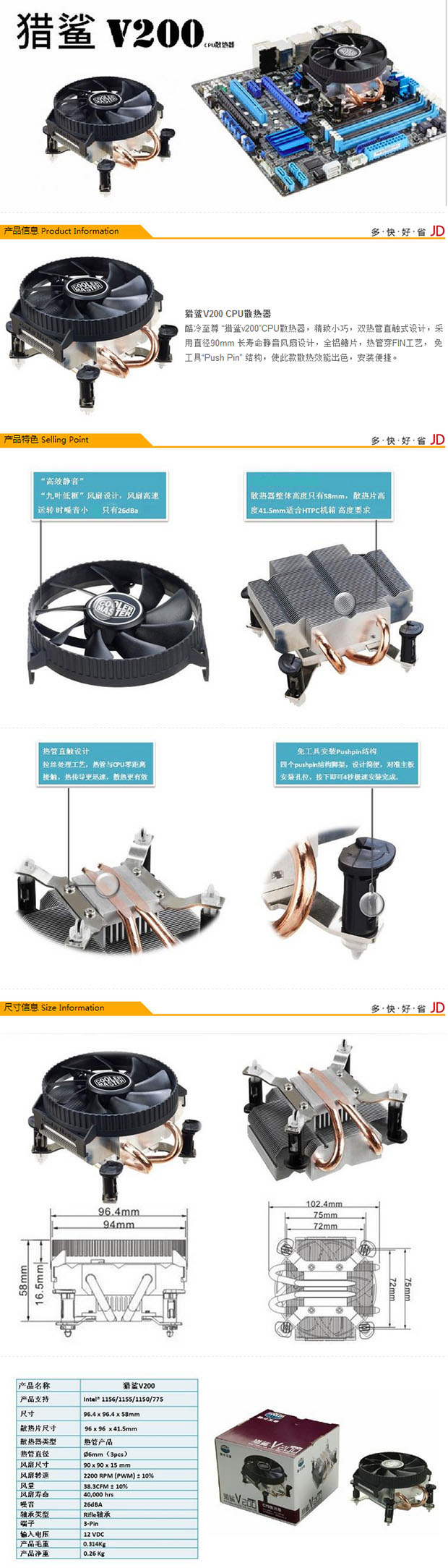酷冷至尊V200CPU散热器